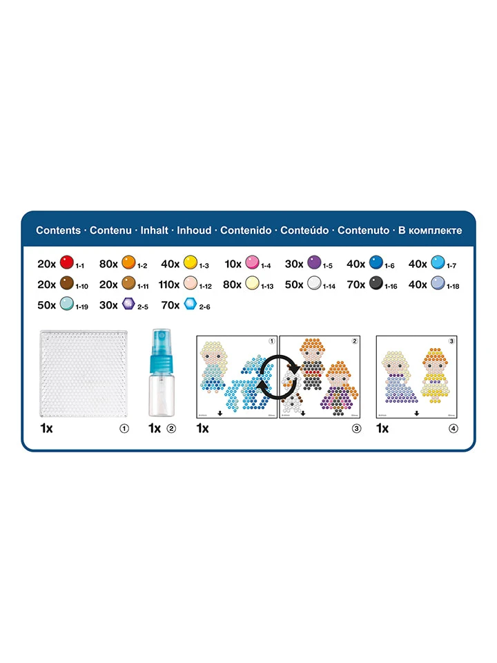 – Inhalt: über 600 bunte Perlen, inkl. Bastelplatte, Sprüher und Motiv-Vorlagen