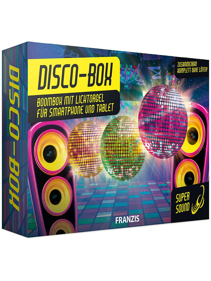 Mit diesem Bausatz baust du deine eigene Boombox mit hochwertigem Verstärker und Lichtorgel! Drei extragroße helle LEDs blinken zur abgespielten Musik und zeigen Bässe (grün), Mitten (blau) und Höhen (rot) an. Die Lautstärke wird per Drehknopf geregelt. Einfach an Smartphone, Tablet oder MP3-Player anschließen und ein Disco-Feeling genießen!