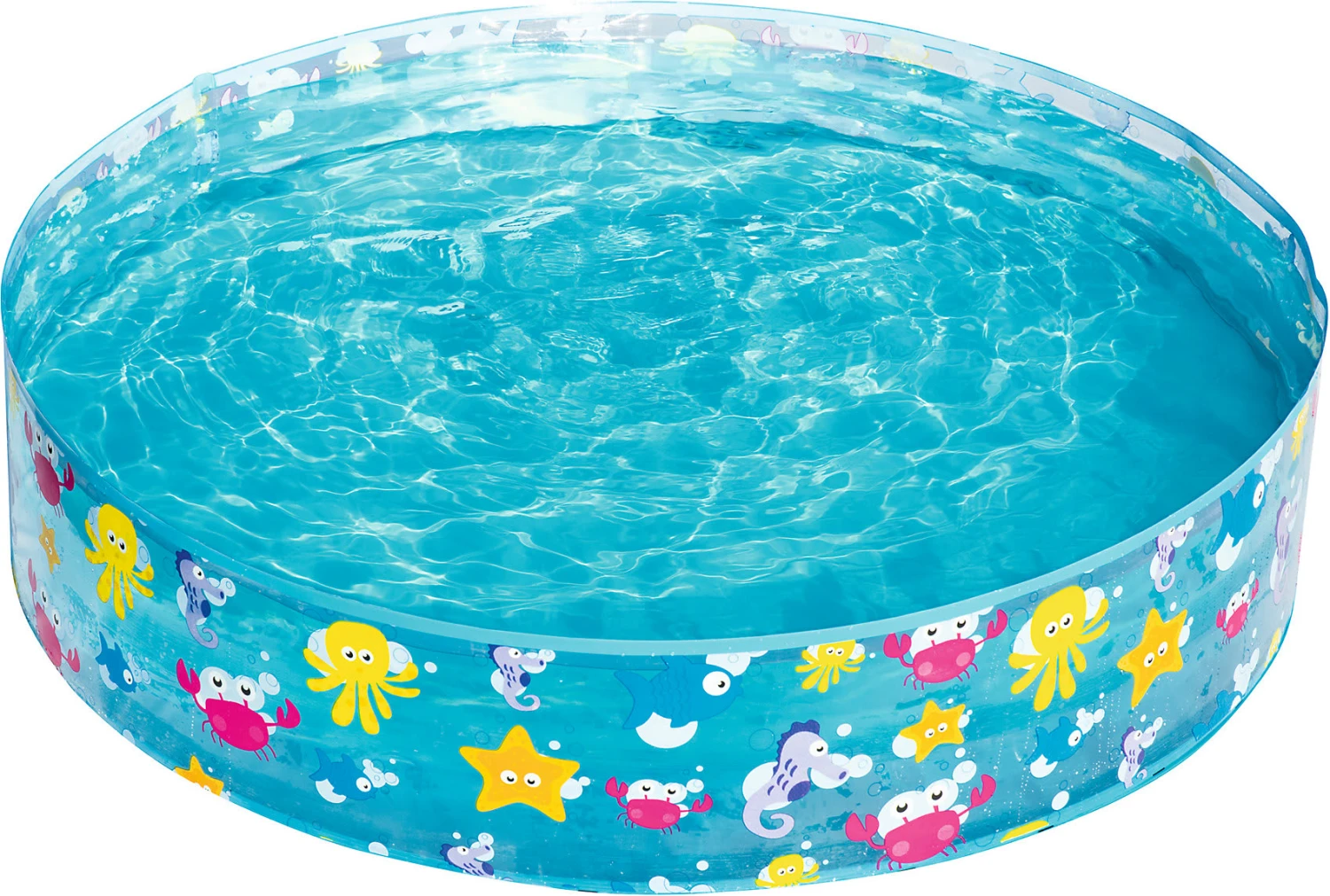 Das tolle „Fill ‚N Fun“-Planschbecken im „Sparking Sea“-Design von Bestway lässt sich ohne Aufpusten aufstellen und einfach mit Wasser befüllen. So kann der Planschspaß im Nu beginnen und man braucht keine Pumpe! Das Planschbecken passt dank seiner praktischen Größe in fast jeden Garten und bietet eine klasse Abkühlungsmöglichkeit für Jung und Alt an heißen Sommertagen. Auch das süße Meerestierdesign sorgt bei Kindern für besonders große Begeisterung! So wird es im Garten sicher nicht langweilig und Kinder können sich so richtig austoben.