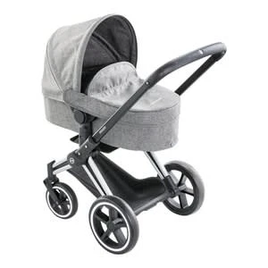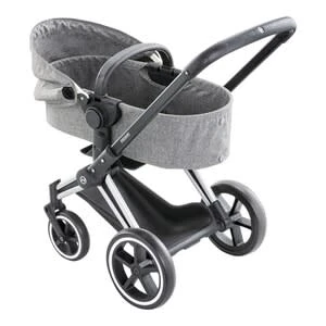 Der tolle 3-in-1-Puppenwagen von Corolle ist dem Original Priam Kinderwagen von Cybex nachempfunden. Er kann zum Buggy und zum Tragebett umgebaut werden. Puppenwagen Cybex von Corolle passend für alle Corolle-Puppen mit 36-52 cm Größe 3-in-1: auch als Buggy oder Tragetasche verwendbar mit abnehmbarer Winddecke, Einkaufskorbverstellbares Verdeck, Speichenräder, Vorderräder schwenkbar, Schutzbügel leicht zusammenfaltbar Maße: 60(L) x 36,5(B) cm, Griffhöhe 64,5 cm Kunststoff und Metall ab 3 Jahren geeignet Authentischer Spielspaß für kleine Puppeneltern: Der Puppenwagen von Corolle wurde zusammen mit dem Hersteller Cybex entwickelt. Vorbild ist das Original des Cybex Priam Kinderwagens. Der Puppenwagen ist mit zahlreichen authentischen Funktionen versehen und kann auch als Buggy und Tragebett genutzt werden. Er ist mit wenigen Handgriffen in die Wunschvariante umbaubar. Das Verdeck kann je nach Spielsituation verstellt werden. In der Buggyvariante ist die Lieblingspuppe durch den Schutzbügel vor dem Herausfallen sicher. Mit dem Bügel fällt auch das Tragen der Babywanne sehr leicht. Der Korb bietet Puppenaccessoires oder kleinen Einkäufen Platz. Die pannensicheren Räder laufen leicht über jedes Terrain. Sie sind mit Speichen versehen. Die Vorderräder sind schwenkbar, was das manövrieren vereinfacht. Nach dem Spiel wird der Puppenwagen zusammengefaltet und platzsparend verstaut. So ist er auch auf Reisen unkompliziert zu transportieren. Die Griffhöhe des Wagens beträgt 64,5 Zentimeter. In den Wagen passen alle Corolle-Puppen mit 36-52 Zentimetern Größe. Er ist für Kinder ab drei Jahren geeignet.