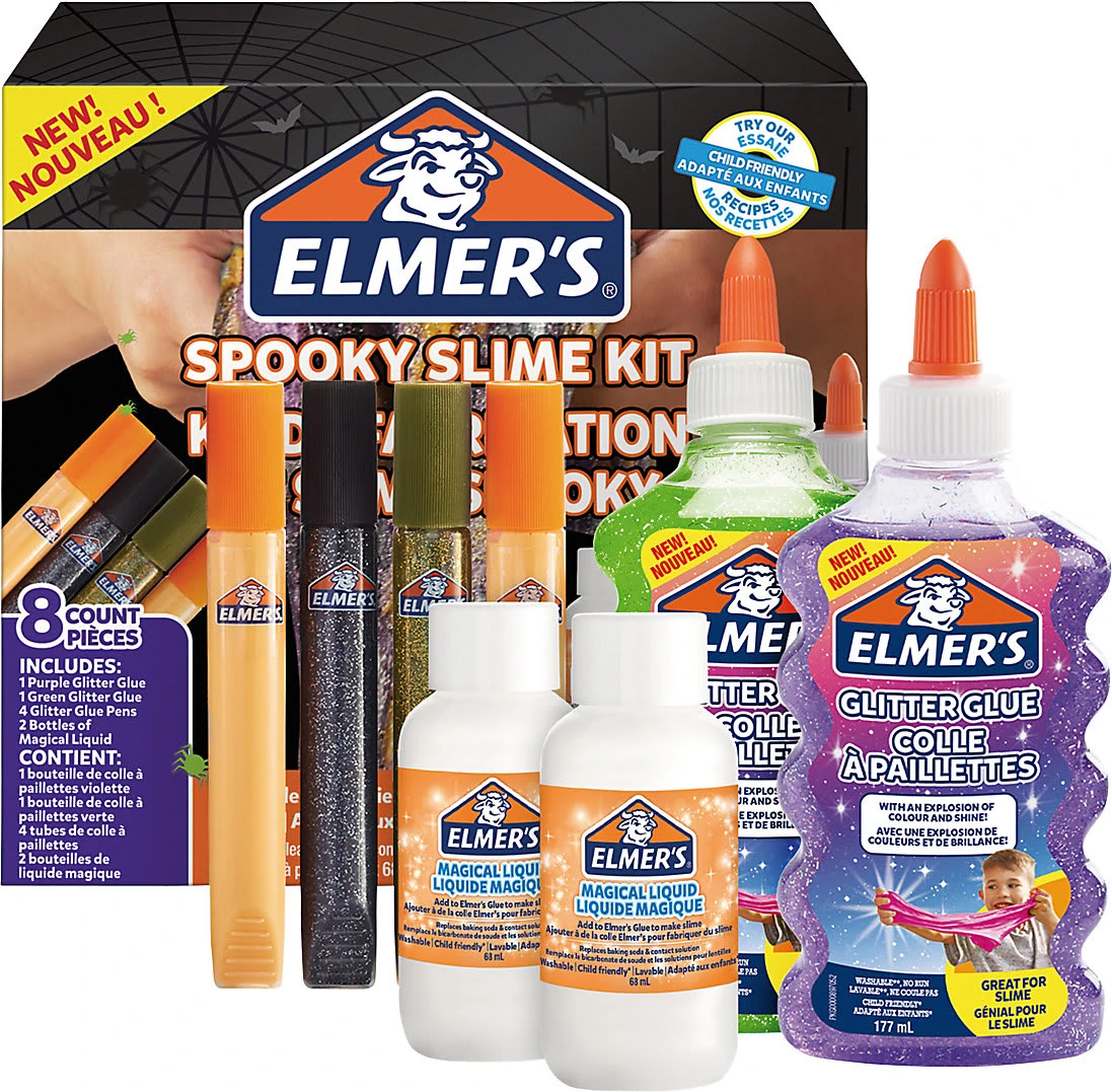 Das faszinierende ELMER`S Kit ermöglicht es, in nur drei einfachen Schritten coolen „Spooky Slime“ zu erstellen, der für stundenlangen Spaß sorgt. Das DIY-Set enthält unter anderem kinderfreundlichen und auswaschbaren Kleber sowie weitere „Zutaten“ für beeindruckende Glitzereffekte und Farben.