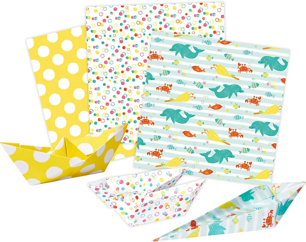 Jede Menge Bastelspaß für kreative Kinder bietet dieses Falt-Bastelset von Spiegelburg! Damit lassen sich sechs bunte Wasserpapier-Schiffe anfertigen, die anschließend als Deko dienen.