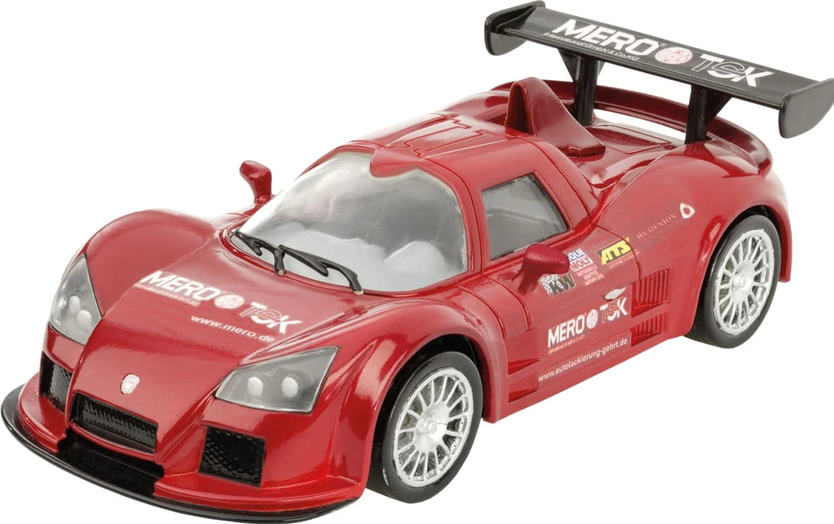 Funkferngsteuertes RC-Fahrzeug Typ Apollo Gumpert mit rotlackierter Kunststoffkarosserie im Maßstab 1:24.