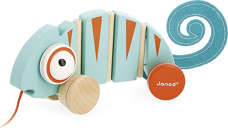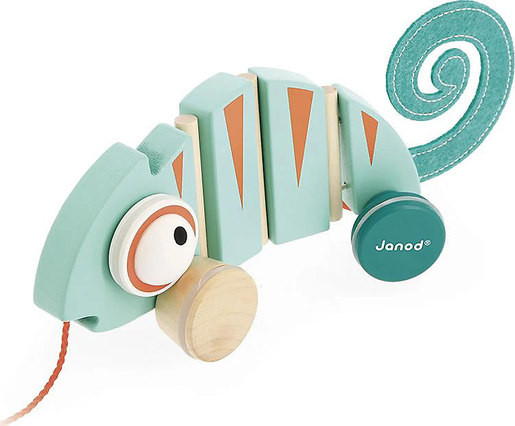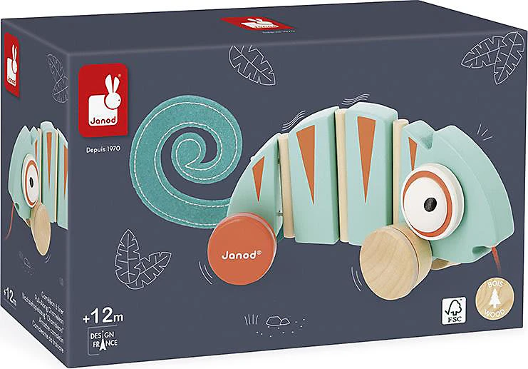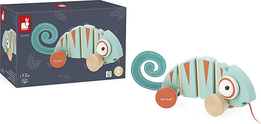 Los geht`s zu einem Spaziergang mit diesem schönen Tropik Nachzieh-Spielzeug Chamäleon von Janod! Während es sich vorwärtsbewegt, rollen seine Augen. Ihr Kind wird begeistert sein! Der perfekte Begleiter, um Ihr Kind zum Gehen anzuregen und um die Grobmotorik zu fördern.