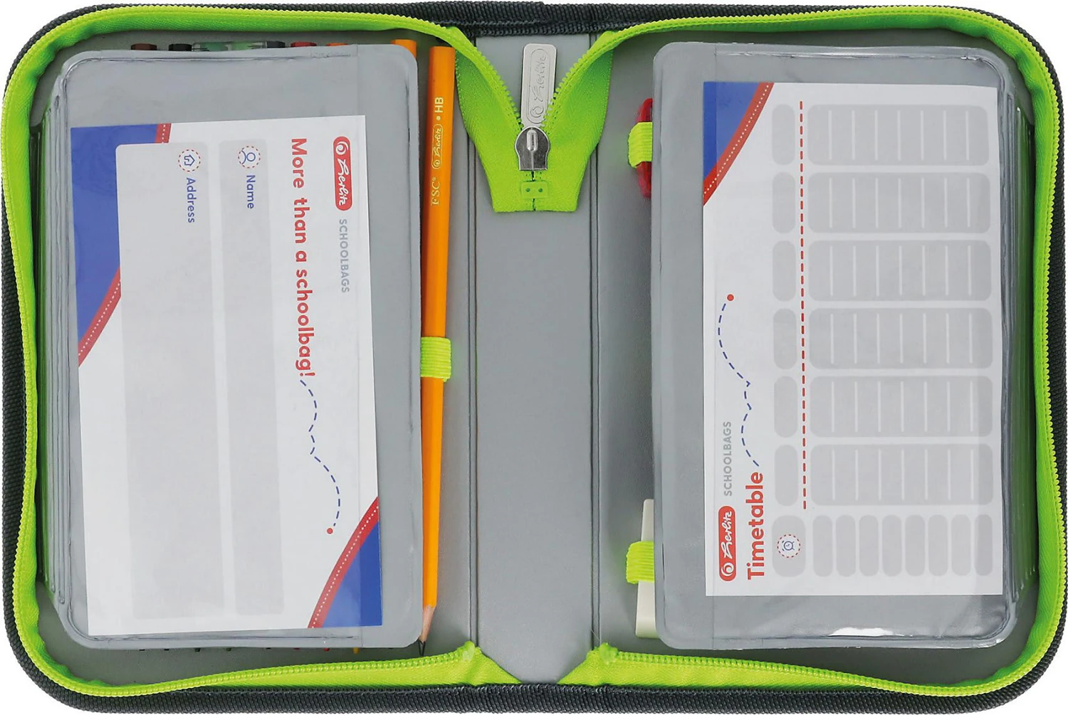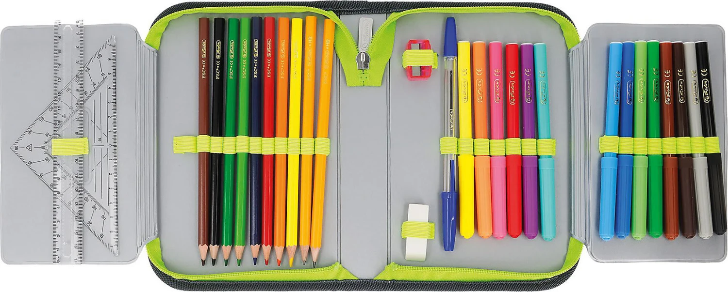 Das neue Schuljahr kann kommen! Mit diesem befüllten Federmäppchen von herlitz kommt ein 31-teiliges Set mit allem, was in der Schule so gebraucht wird. Das Hauptfach schließt mit einem praktischen Reißverschluss und die 2 Klappen im Inneren bieten Platz für alle wichtigen Schreib- und Bastelutensilien, wie Lineal, Radierer und Anspitzer. In dem Set enthalten ist bereits eine komplette Füllung – damit steht einem gelungenen Schulanfang nichts mehr im Wege.