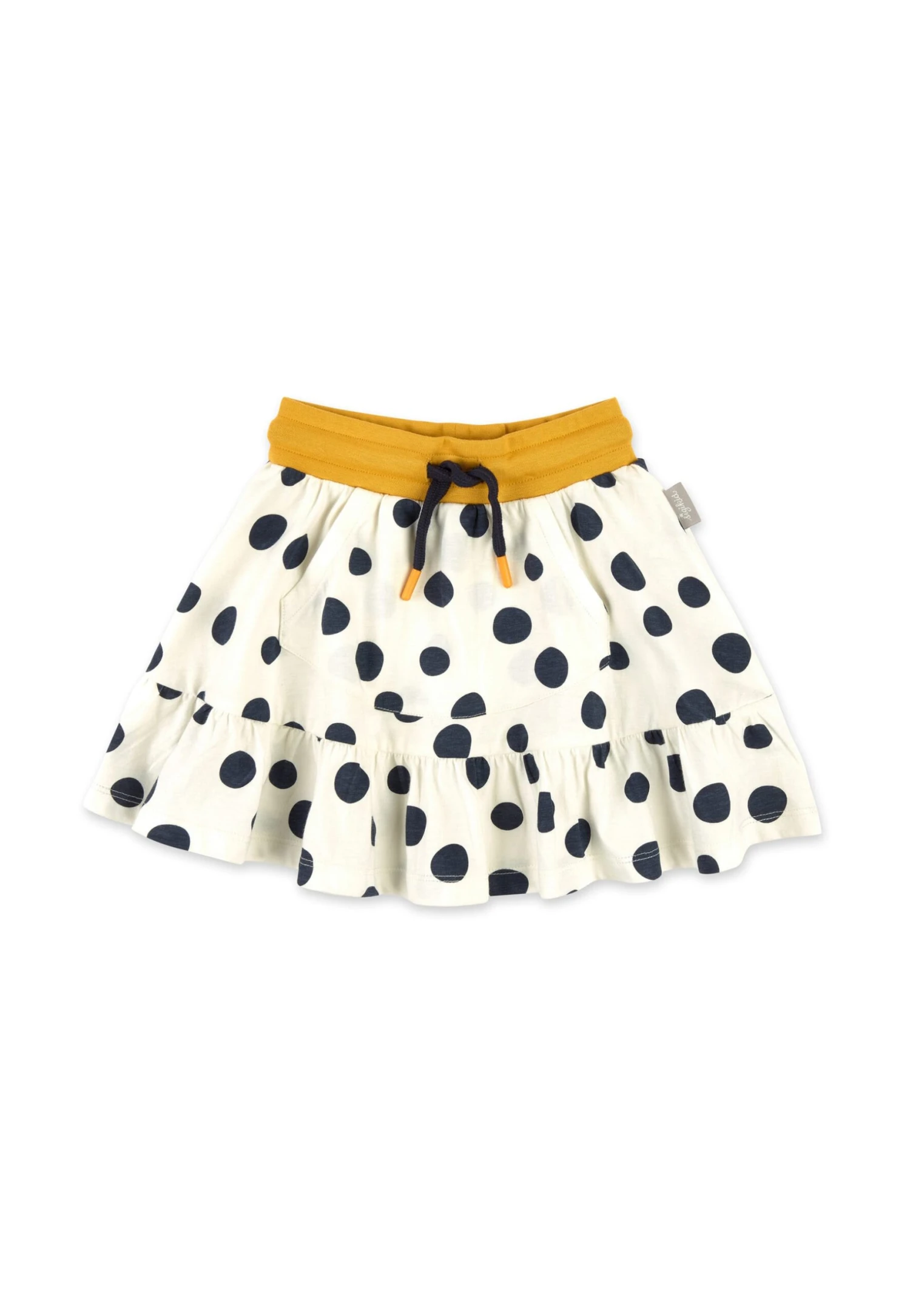 Mädchenrock mit Volant, gepunktet, sigikid Kinderkollektion Tupfen Pony Frühjahr/Sommer 2023 Exklusive und hochwertige Mädchenkleidung mit hohem Tragekomfort und bequemer PassformBaumwolle aus kontrolliert biologischem Anbau Qualität: Singlejersey ca.180 g/m²Farbe: Creme Weiß, dunkelblau bedrucktElastischer Bund in Gelb mit geflochtenem Bindebändchen Schwungvoll weit geschnitten, mit VolantKänguruhtaschesigikid Logo Label in der SeitennahtAlle Stoffe unseres Mädchenrocks sind für das Label Textiles Vertrauen Oeko-Tex®-Standard 100 zertifiziert