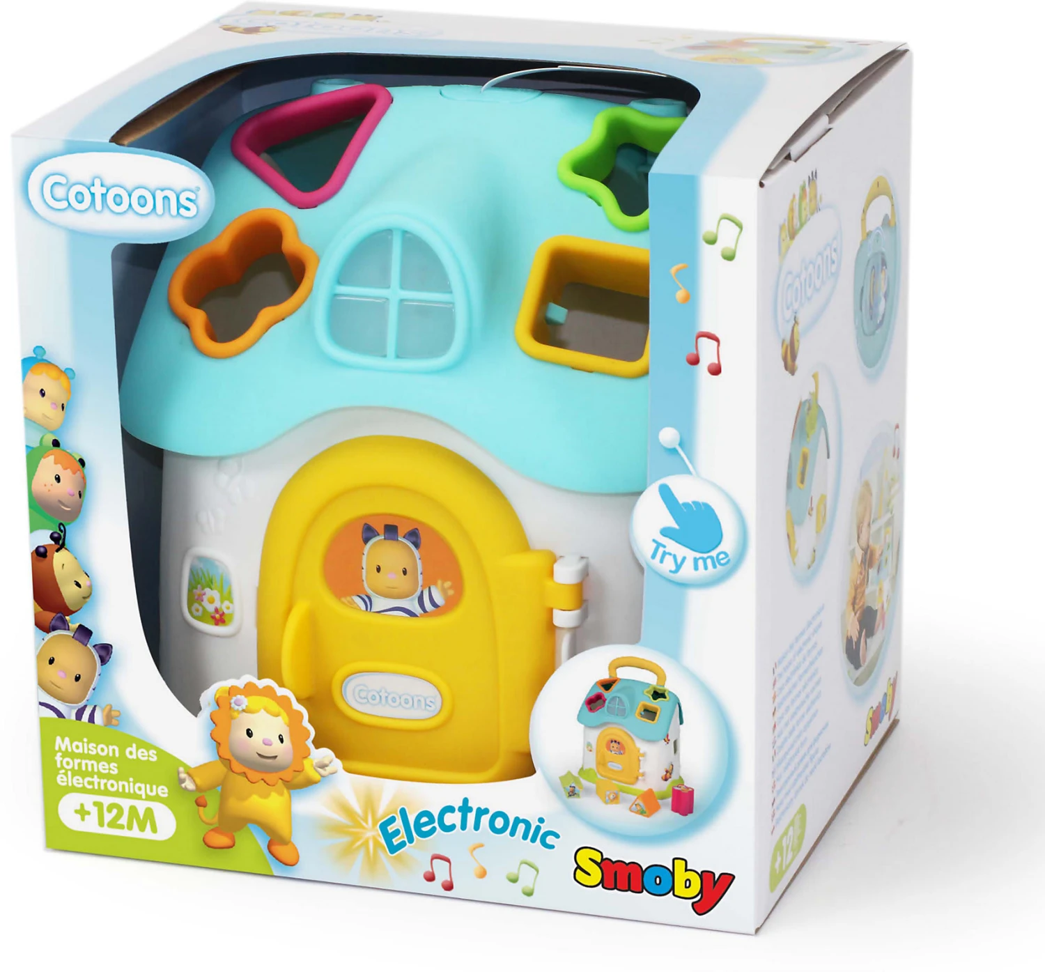 Dieses lustige Haus wird Babys begeistern! Es sieht nicht nur witzig aus, sondern bietet mit seinen Licht- und Soundeffekten auch tolle Spielmöglichkeiten. Stecken Babys eine der vier Cotoons-Figuren in die richtige Vertiefung, so werden sie mit Licht und Sound belohnt. Außerdem lässt sich die Tür des Häuschens öffnen, um noch mehr Spannendes zu entdecken. Und dank dem Tragegriff lässt sich das Häuschen sogar für unterwegs mitnehmen!