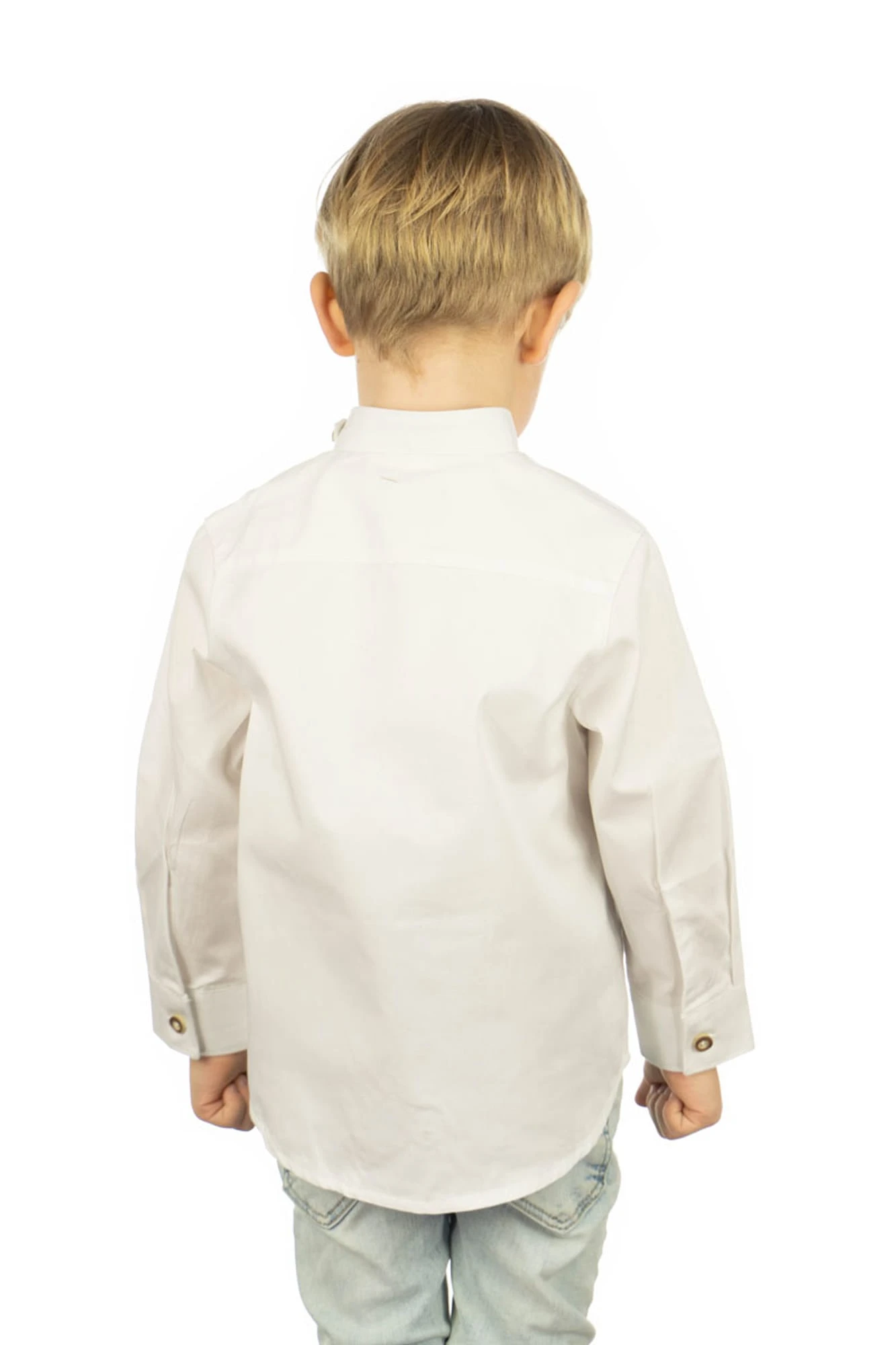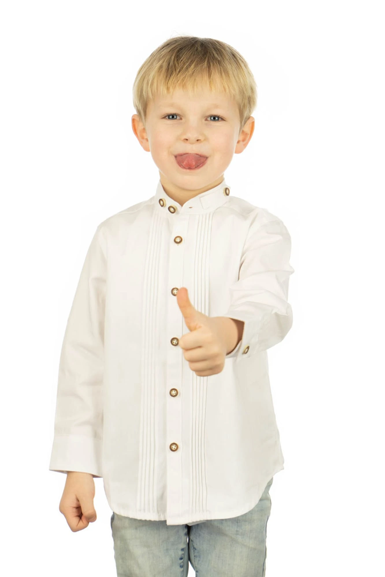 Wenn es etwas zu feiern gibt, wollen auch die Kleinen mit – am liebsten in diesem weißen Trachtenhemd im Partnerlook wie der Papa. Hingucker sind die Biesen links und rechts der Knopfleiste. Zusammen mit den Knöpfen in Hirschhorn-Optik und dem Stehkragen ergeben sie den perfekten Trachtenlook. Reine Baumwolle und bequeme Weite sorgen für das gute Tragegefühl.